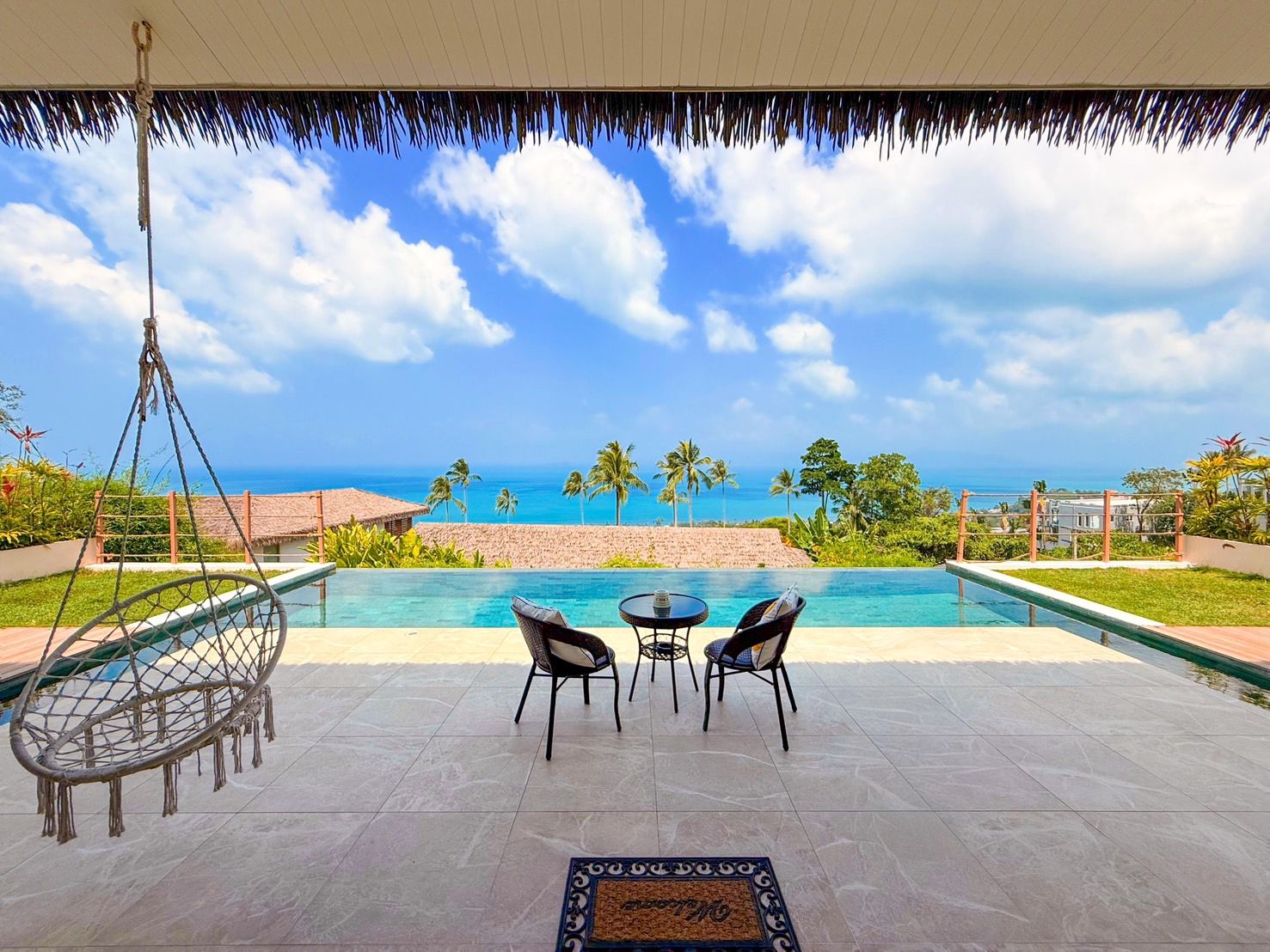 Located on Bang Por Hill, the property is only a short drive to the beach, restaurants, and local conveniences, offering a balance of privacy and accessibility.